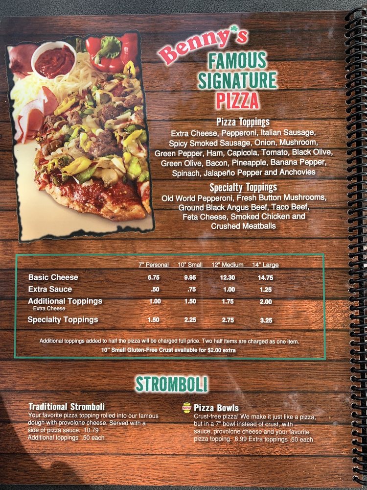 Welcome to Benny's Pizza, where you can enjoy a wide variety of menu options, including salads, appetizers, wings, and of course, delicious pizzas. Located at 968 Columbus Ave Marysville, OH 43040, Benny's Pizza offers services like takeout, reservations, delivery, and outdoor seating. The restaurant is known for its many vegetarian options, accommodating for all dietary preferences.