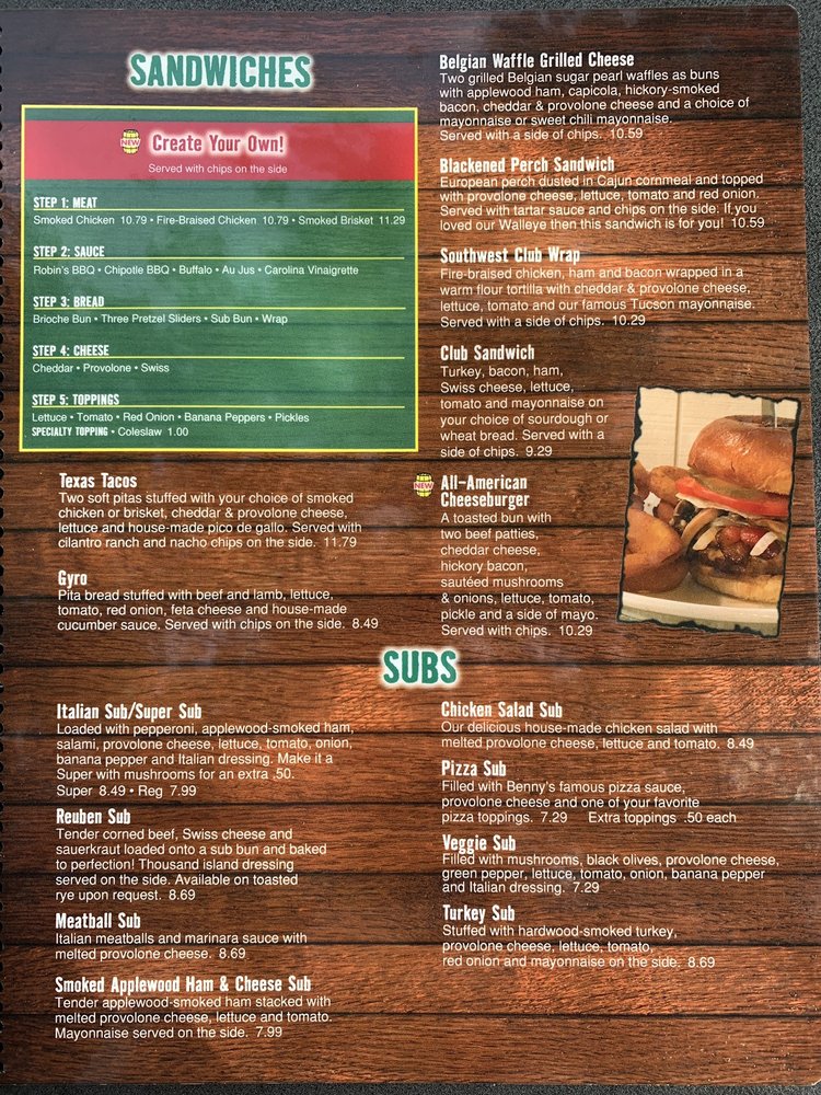 A sub bun filled with Benny's famous pizza sauce, Provolone cheese and one of your favorite pizza toppings